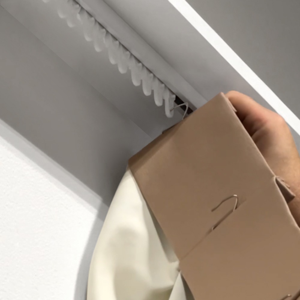 Typically used for pinch or knife pleat drapery/curtains, the ½” mini ball bearing carrier is initially slid into the track, then the drapes are hooked to the carrier via a drapery pin.