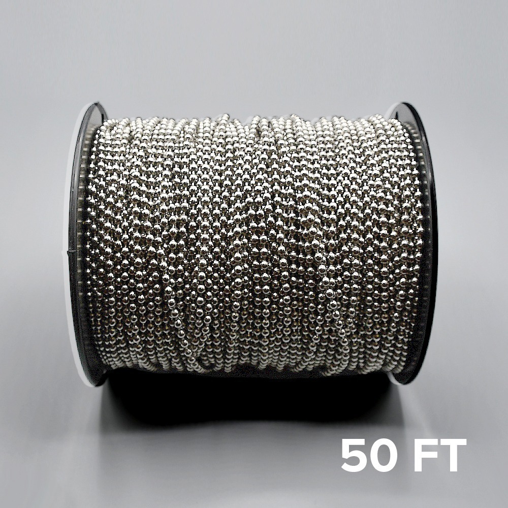 A ball chain is a type of control mechanism made up of a series of small metal balls linked together, forming a flexible chain that can be used to raise, lower, or adjust the position of the roller shade. Our new Super Strong Ball Chainâ„¢ has increased tensile strength, nearly 20% greater than the previous version. It’s ideal for the new chainhold tension devices required under the updated WCMA/ANSI standard A100.1-2022, taking effect June 1, 2024.