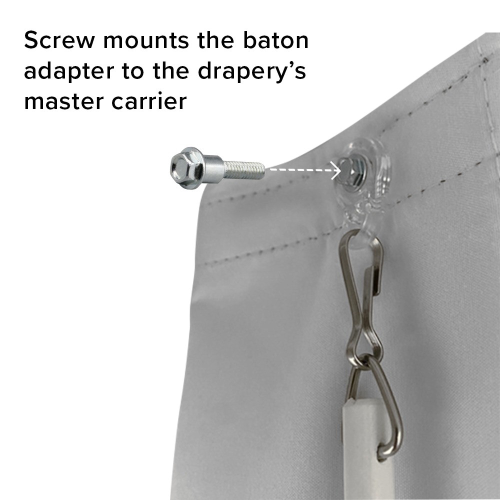Our Hex Head Long Shoulder Screw secures the drapery baton’s adapter (either standard or ADA) to the master carrier: