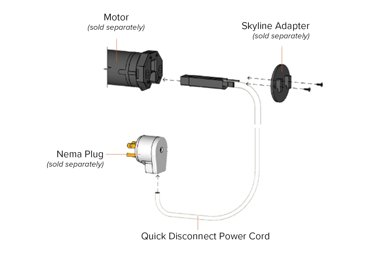 Quick Disconnect Power Cord or Whip (4 meters or 13.12 feet) for Roller Shades.